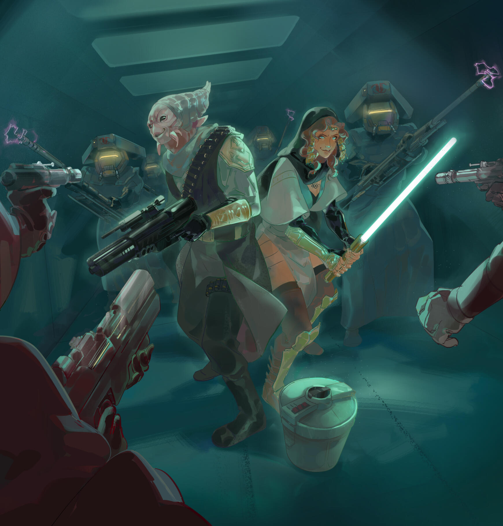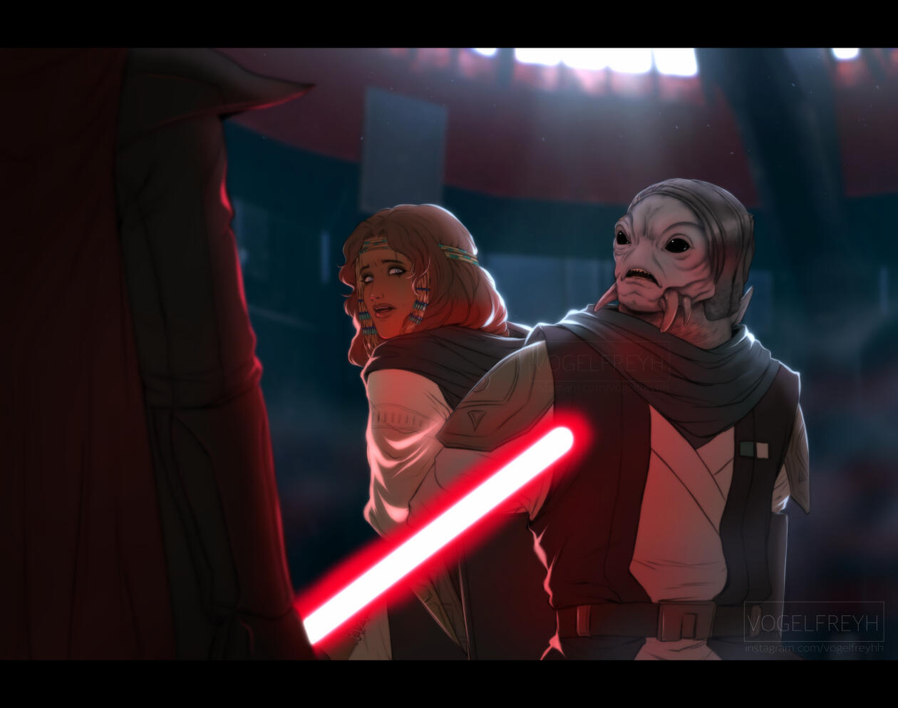 Sykho’s life shifted irrevocably in 17 BBY, the year he met Ti’ad Davah.The encounter began during what should have been a routine spice transfer on Tatooine. Sykho, representing the Pyke Syndicate, was scheduled to hand over a shipment to a representative of the Ghesh family. That representative turned out to be Ti’ad, a guarded, sharp-eyed woman with a presence that gave little away. Unknown to him at the time, she was a former Jedi hiding in the underworld.