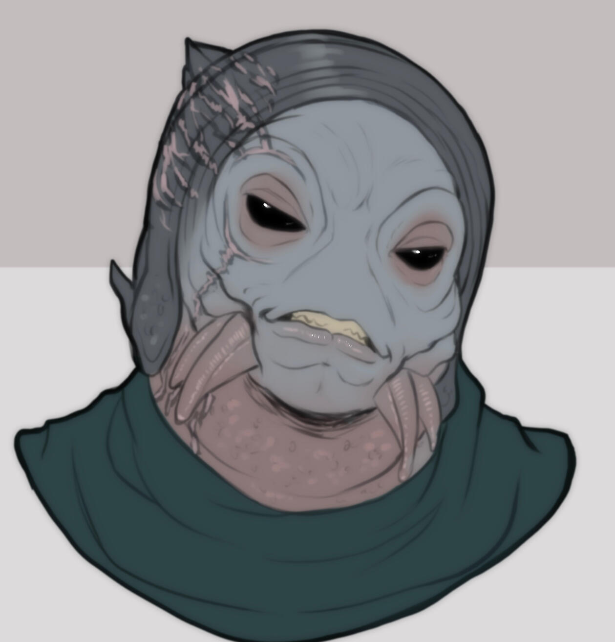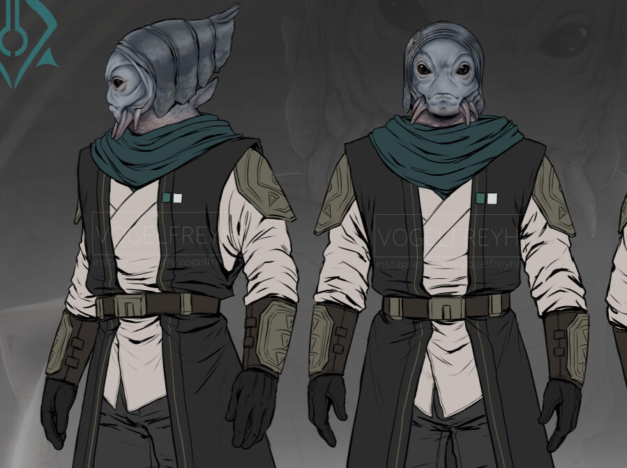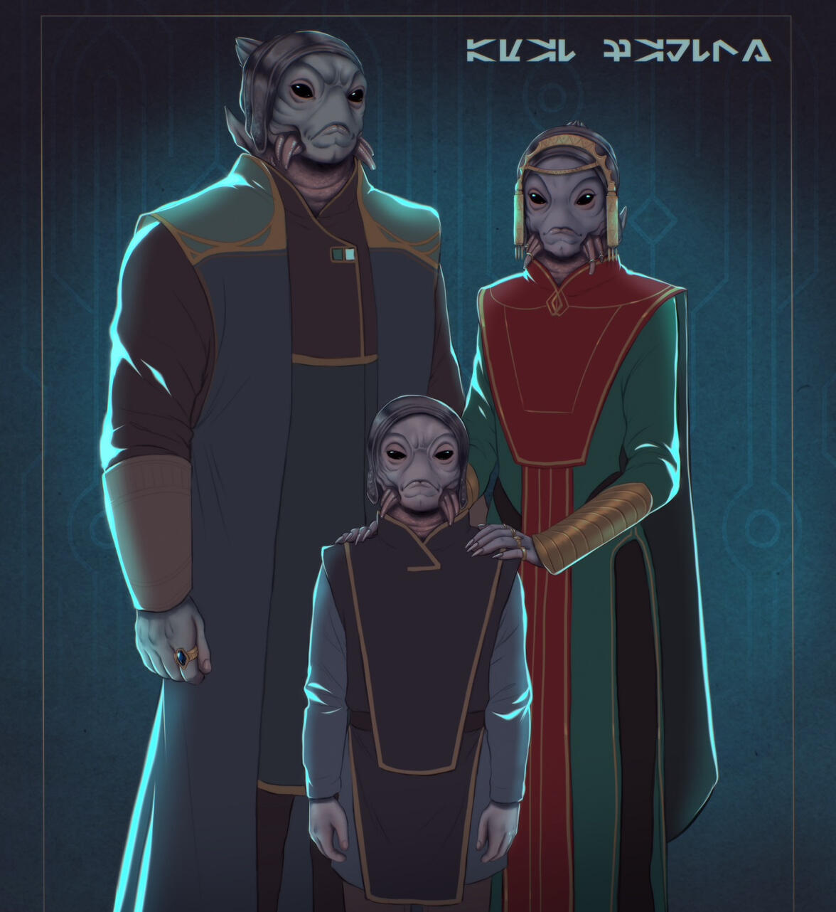 A short time after their reunion, Ti’ad and Sykho were married on Oba Diah in a ceremony that, by Syndicate standards, was uncharacteristically grand. What began as a formal union quickly turned into a multi-day celebration, an event attended by Pyke dignitaries, trusted enforcers, and even a few off-world allies who had stood by them over the years.There were no lavish declarations, no ceremonial speeches, only the quiet certainty between two who had already walked through fire together and the unspoken truth that they had already belonged to one another for years. Their marriage only affirmed what had long been known between them.With Ti’ad now by his side in both life and work, their presence within the Syndicate solidified into something formidable. She took on increasingly critical responsibilities, negotiating high-stakes arrangements, acting as Sykho’s eyes and ears in sensitive territories, and leading missions that required more finesse than brute force.Then, in 6 BBY, Ti’ad became pregnant. Interspecies conception between a Pyke and a Human was unheard of yet. And the moment Sykho learned, something in him shifted. The future, which for so long had been filled only with strategy, blood, and survival, now held something else - legacy.Their son, Gereon, was born under the watchful quiet of Oba Diah’s night sky. He was healthy, strong and rare in every sense. Though his form mirrored that of a young Pyke, there were signs that set him apart. His skin was pale, almost pearlescent, unlike the mottled hues of his father’s kin. His eyes, Davah blue, glowed with the unmistakable intensity of Ti’ad’s Davah ancestry. And his blood ran red, not green.