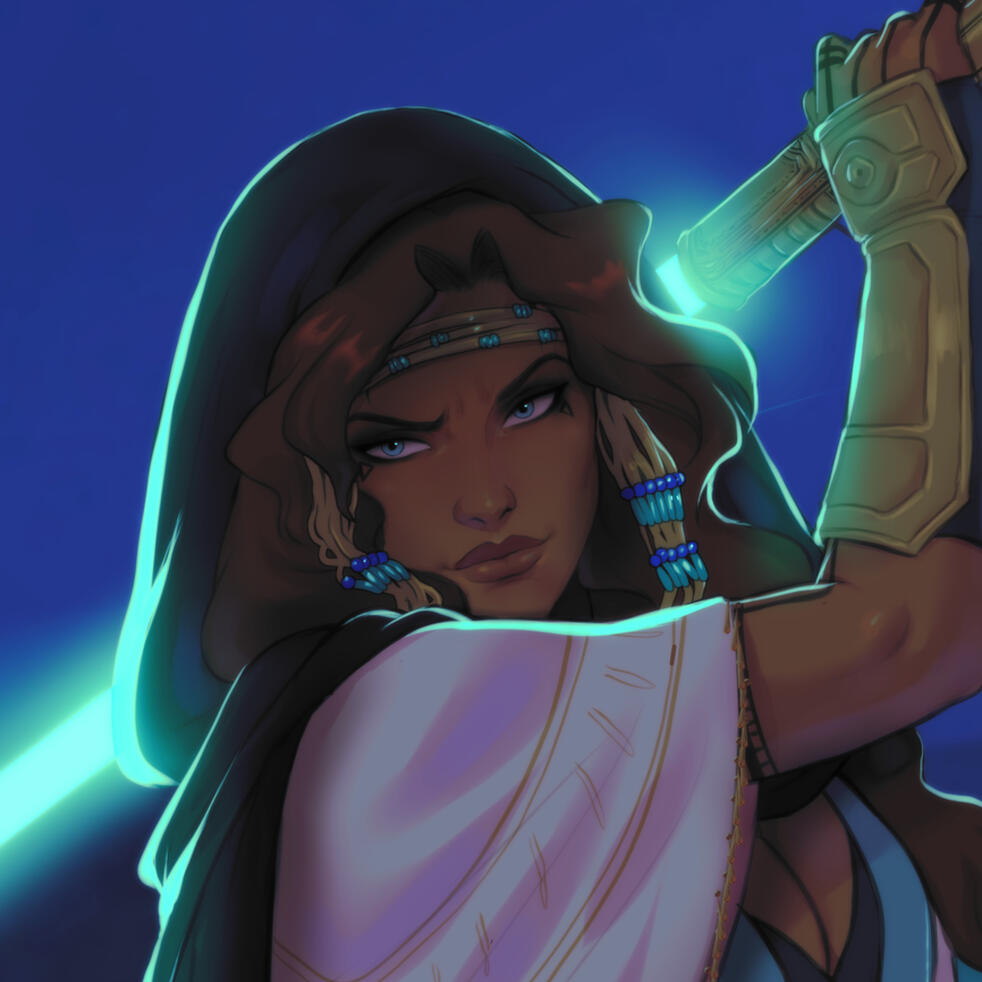 Ti’ad was born in 37 BBY on Yasiah, a desert planet in the Outer Rim. She was a descendant of the extinct Davah, a long-lived, Force-sensitive species known for their striking blue eyes and spiritual traditions. Her early childhood was spent among the last remnants of her people, who clung to their way of life in the face of growing danger.In 33 BBY, when Ti’ad was just four years old, Yasiah was ravaged by violent natural disasters that rendered it uninhabitable. Her mother Ask’kah, a Davah priestess, sacrificed herself to save the surviving members of their clan. The remaining survivors Davah bloodlines fled the destruction and sought refuge in the Outer Rim. They eventually settled on Tatooine, but not without cost.