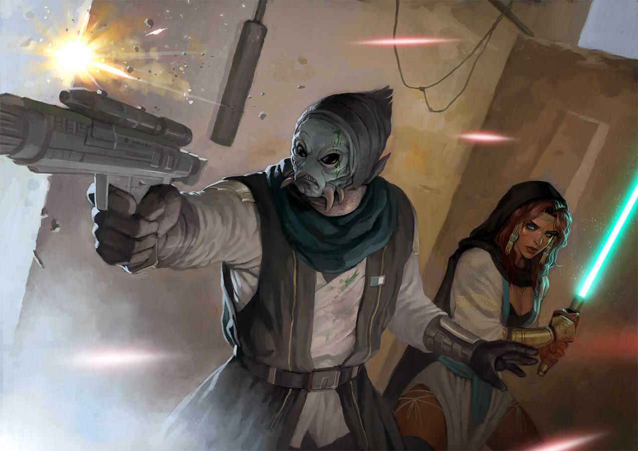 Sykho’s life shifted irrevocably in 17 BBY, the year he met Ti’ad Davah.The encounter began during what should have been a routine spice transfer on Tatooine. Sykho, representing the Pyke Syndicate, was scheduled to hand over a shipment to a representative of the Ghesh family. That representative turned out to be Ti’ad, a guarded, sharp-eyed woman with a presence that gave little away. Unknown to him at the time, she was a former Jedi hiding in the underworld.