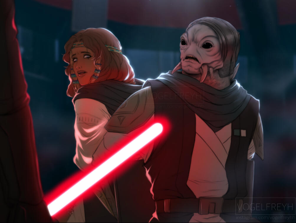 What followed was no simple skirmish. It was a brutal, drawn-out duel. A clash of Force and fury. Ravad and Ti’ad fought as they had once trained: blades humming, instincts aligned. The Force flowed between them, two Davah bloodlines holding the line one final time. But Varn was powerful, corrupted and relentless.In the final moments, it was Ravad who landed the mortal blow, driving his saber through Varn’s chest in a burst of light and fury. But the victory came at a cost. Ravad was mortally wounded, his side carved open by the Inquisitor’s final strike.
