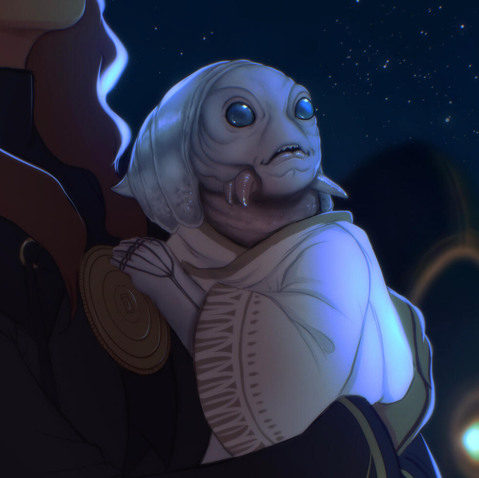 To Sykho, Ti’ad is the only soul in the galaxy before whom he can fully lower his guard. In a life built on control, calculation, and strength, she is the one presence where he allows himself to be vulnerable, because he knows, with unwavering certainty, that she would never judge him for the weight he carries or the cracks beneath his surface. With her, he doesn’t have to pretend. He doesn’t have to be the sharp edge the world expects him to be. She sees through it, always has.He loves her gentleness. The way her voice softens when speaking to him. The steady devotion in her eyes when they stand back to back in the middle of chaos. He loves the way her hand finds his when words are too much. The way she looks at him, not as a feared enforcer, not as a syndicate figure, but as the man he truly is beneath all that. He loves her loyalty, her quiet strength, and the graceful, composed way she moves through the world, even after everything she’s endured. Even her scent, the quiet reminder that she is near, grounds him when everything else seems to spiral.Ti’ad became the thing he never knew he needed. Over time, she rooted herself in places of him no one else had ever reached. At some point, he stopped imagining a life without her in it. She is the one contradiction that ever made sense, the calm in his storm, the constant in a world built on betrayal and fire. She is the one person he would burn the galaxy down for without hesitation.