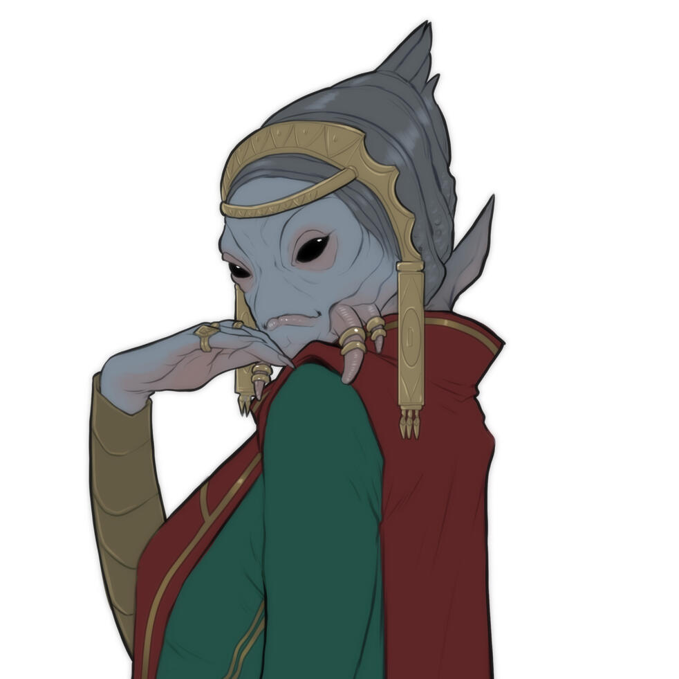 Stripped of her former identity and burdened by the ghosts of her training, she navigated the criminal world alone, using only a false name and her sharpened instincts. She buried the Force deep within herself, afraid to draw attention, but its influence lingered in every movement, subtle, but unmistakable.At first, she survived on odd jobs - smuggling minor shipments, helping with surveillance, and running messages between lower-tier gangs. Her quiet, watchful nature and quick reflexes made her invaluable. What set her apart, however, was her fearlessness in close-quarters combat. She preferred claws, knives and short blades, often laced with poison, a brutal style that contrasted sharply with the more showy, distant weapons favored by others. Within months, her reputation grew.By 18 BBY, she was noticed by the Ghesh family, a powerful and politically-connected crime family that operated out of the upper levels of Coruscant’s shadow markets. They took her in, offering steady work and protection in exchange for her loyalty. Varic Ghesh, the family patriarch, saw potential in Ti’ad, though many believed it was his son, Vanus Ghesh, who truly pushed to bring her into their fold.